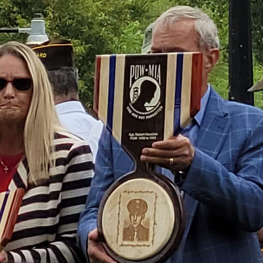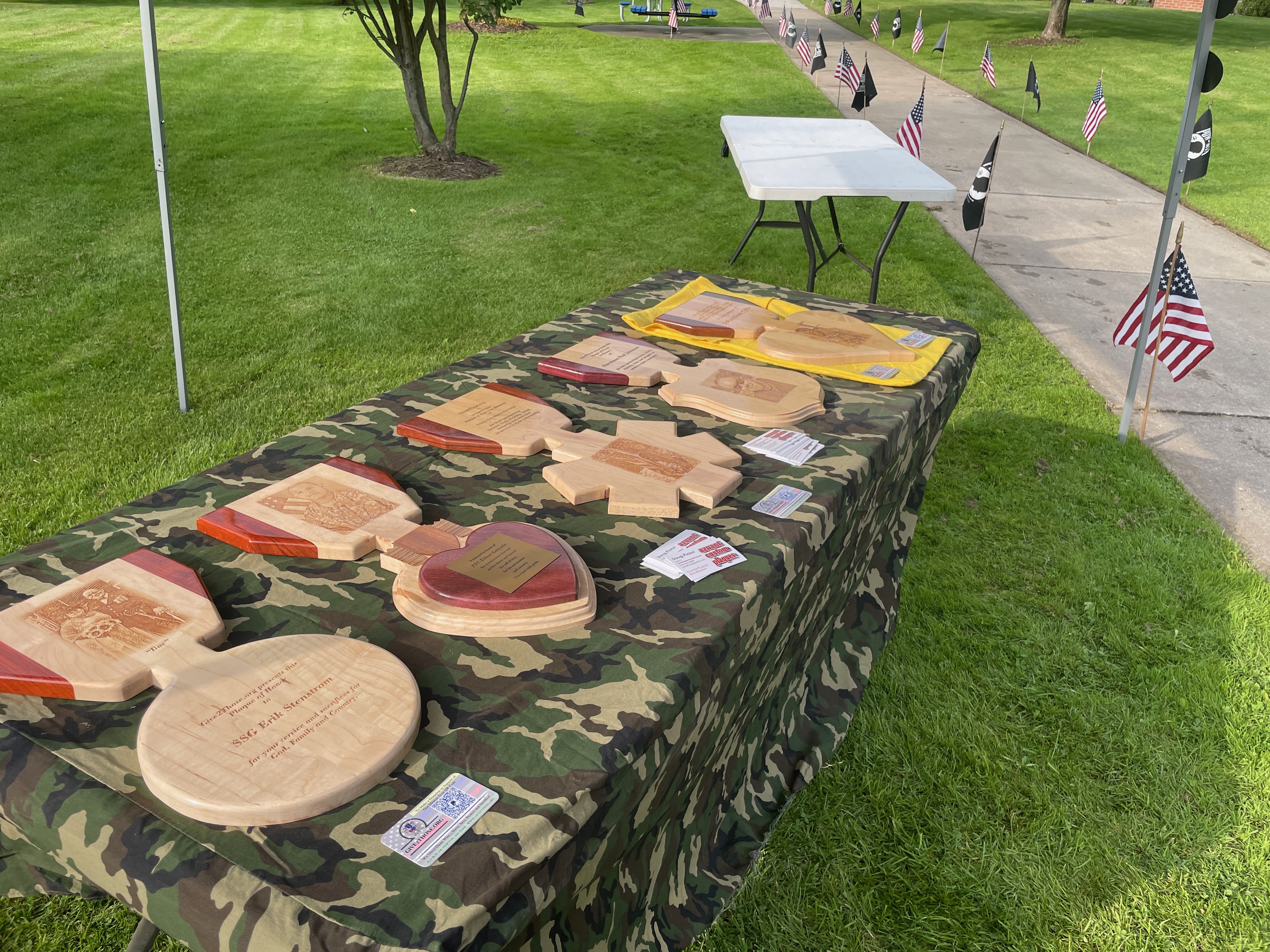 Founder and master craftsman Doug Pickel channels his artistry into creating sacred, symbolic wooden plaques that commemorate the sacrifices of our nation’s heroes. Each of the more than 700 plaques he has produced is a work of devotion—meticulously crafted over 60 hours and finished with 25 coats of guitar lacquer. The use of maple and Peruvian walnut embodies the enduring strength and profound challenges faced by these families. Every plaque stands as a lasting testament to their courage, memory, and resilience.